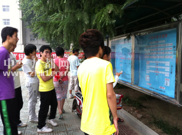 上圖:考生們陸續(xù)到所屬考點(diǎn)查看考場平面示意圖?! ?記者 王映攝)