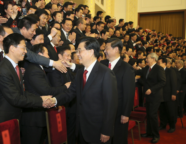????在熱烈的掌聲中,胡錦濤、習(xí)近平發(fā)表了重要講話(huà)?! ?/p>