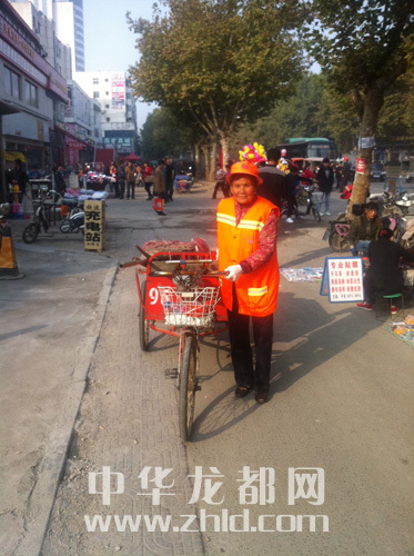 ????由于周口荷花市場北門附近有幾家經(jīng)營服飾的大型賣場和許多經(jīng)營各色小吃的店鋪,因而這里極具人氣。據(jù)說,每天從此北門經(jīng)過的市民超過10萬人。人一多,地面的衛(wèi)生狀況自然不容樂觀?!捌綍r(shí),我們是‘一班一人’清掃,但是到了節(jié)假日,人流量往往是平時(shí)的幾倍,垃圾量自然增多,我會(huì)和另外一位同事分頭打掃。”王霞軒說。