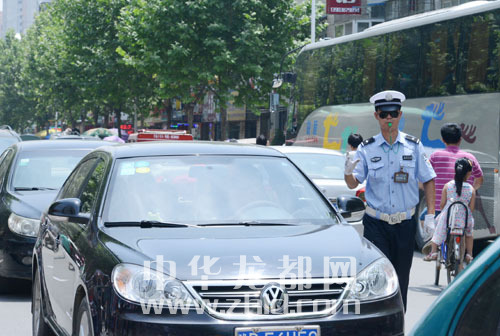 交警維持考點(diǎn)外道路交通秩序。