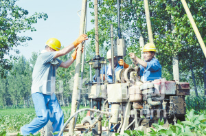 ????本報訊 (記者 張猛 文/圖) 8月3日下午,記者在西華縣田口鄉(xiāng)看到,一座座鉆機綿延數(shù)公里,工人們正頭頂烈日進行開工建設(shè)前的鉆探勘測工作(如圖),標(biāo)志著鄭合高鐵周口西華段建設(shè)已進入實質(zhì)性階段。