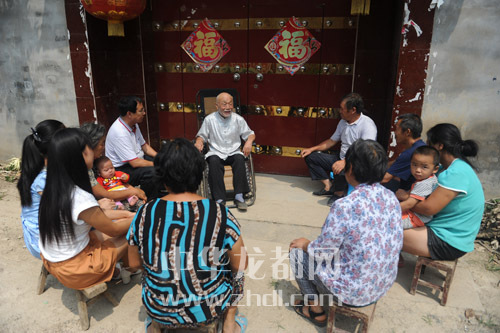 ????本報訊 全國上下慶??箲?zhàn)勝利70周年之際,96歲的鄲城籍抗戰(zhàn)老兵朱好德每天都關(guān)注各大電視臺播放的抗戰(zhàn)特別節(jié)目。由于1938年正月的黃河保衛(wèi)戰(zhàn)是老人家打得最過癮、打得最得意的一場戰(zhàn)役,8月26日,依照朱好德的意愿,朱家上下十幾口歡聚一堂,聽他講述炮火紛飛年代中華兒女血灑疆場殺日寇的故事(如圖)。