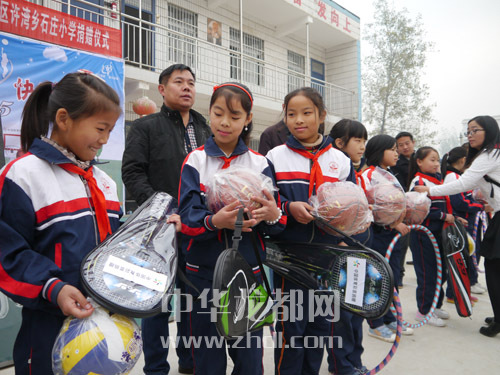 ????11月3日,河南“公益體彩 快樂操場”公益活動走進(jìn)東新區(qū)石莊小學(xué)(如圖)和太康縣毛莊小學(xué),工作人員為兩所學(xué)校送去價值2.4萬元的體育器材,并帶領(lǐng)孩子們上了一堂生動的體育課。