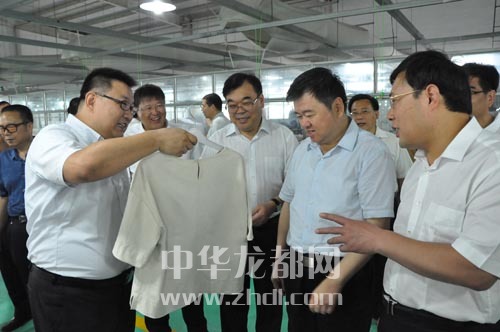 ????集中開(kāi)工活動(dòng)前,徐光、劉繼標(biāo)等市領(lǐng)導(dǎo)在周口阿爾本制衣有限公司調(diào)研。 記者 王亞輝 攝