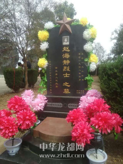 ????2015年10月,周口市鹽業(yè)局干部康國(guó)富和胡東周受市委組織部指派,到商水縣鄧城鎮(zhèn)周莊村駐村。2016年3月,康國(guó)富和胡東周在村里召開黨員大會(huì)時(shí),偶然了解到趙海靜的事跡,深受感動(dòng)。他們經(jīng)過調(diào)查、走訪,確認(rèn)了趙海靜烈士的事跡。于是,他們先后向周口市委組織部、商水縣委組織部有關(guān)領(lǐng)導(dǎo)作了匯報(bào),懇請(qǐng)有關(guān)部門為趙海靜修墓立碑。他們的請(qǐng)求得到了市縣兩級(jí)組織部門的大力支持,鄧城鎮(zhèn)民政所和商水縣民政局聞?dòng)嵑笠卜e極配合。