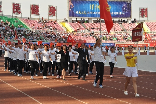 ????當(dāng)日16時(shí),國(guó)旗方陣、會(huì)旗方陣、彩旗隊(duì)、裁判員、運(yùn)動(dòng)員依次入場(chǎng),一個(gè)個(gè)意氣風(fēng)發(fā)的團(tuán)隊(duì)引來(lái)現(xiàn)場(chǎng)觀眾陣陣掌聲和歡呼聲:周口川匯區(qū)代表團(tuán)首先入場(chǎng),他們步伐矯健,英姿勃發(fā);市委辦公室代表團(tuán)精神抖擻,意氣風(fēng)發(fā);市委宣傳部代表團(tuán)邁著矯健的步伐走向主席臺(tái)……