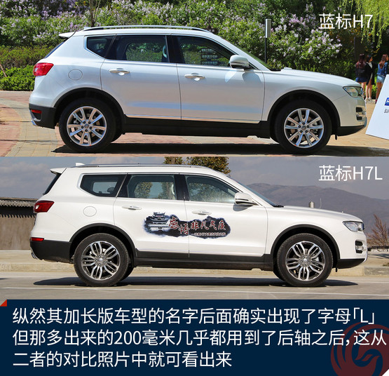 提到加長,我腦子中的第一反應(yīng)是軸距加長幾十甚至上百毫米,然而,哈弗藍(lán)標(biāo)H7L并不是這樣??v然其加長版車型的名字后面確實(shí)出現(xiàn)了字母「L」,但那多出來的200毫米幾乎都用到了后軸之后,這從二者的對比照片中就可看出來。
