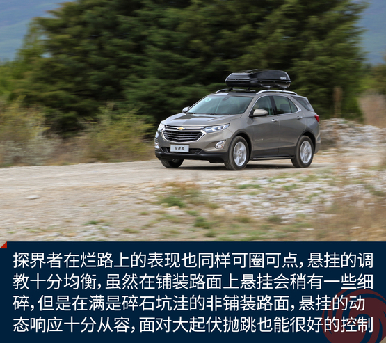 探界者在爛路上的表現(xiàn)也同樣可圈可點(diǎn),懸掛的調(diào)教十分均衡,雖然在鋪裝路面上懸掛會(huì)稍有一些細(xì)碎,但是在滿(mǎn)是碎石坑洼的非鋪裝路面,懸掛的動(dòng)態(tài)響應(yīng)十分從容,而且面對(duì)一些大起伏的拋跳也能很好的控制車(chē)身的起伏。