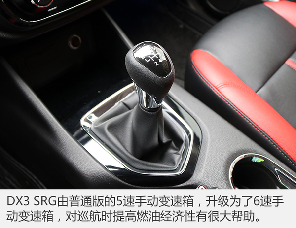 此前DX3分別提供了1.5L+5MT與1.5T+CVT兩種動力組合,而在DX3 SRG上則新增加了6速手動變速箱供選擇,同時也是此次試駕的主要車型。