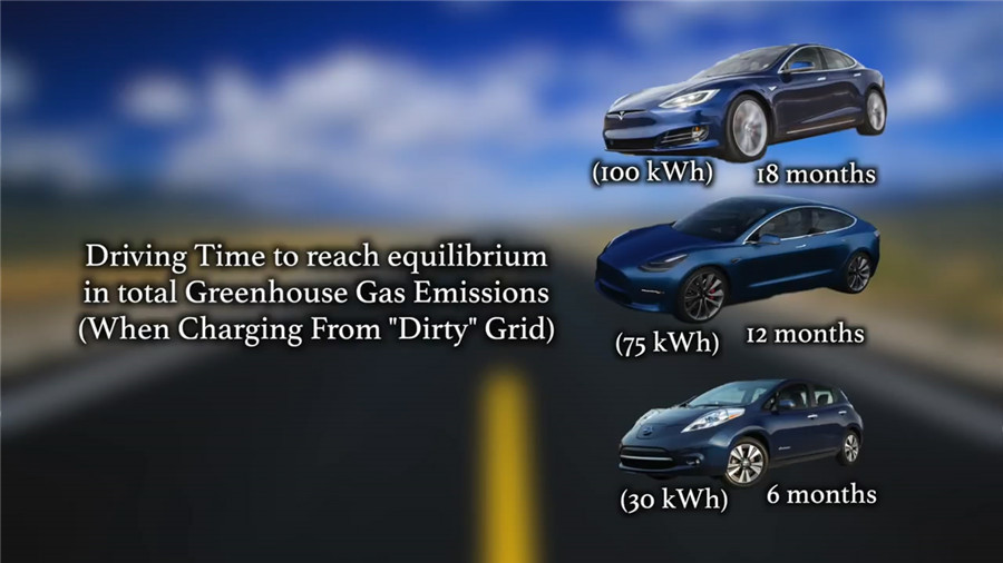 ????????也就是說,隨著你使用電動車的時間、里程越長,總排放方面就會比內(nèi)燃機汽車更環(huán)保?;旧像鲲L(fēng)6個月的時候總排放達到和內(nèi)燃機車相當、而Model X 100D也僅需要18個月。你使用超過了這個時間,就在為環(huán)保事業(yè)做出貢獻了。