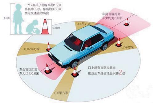 ????據(jù)交管部門有關(guān)人士介紹,車頭正前方盲區(qū)對于身高高于1米的兒童,司機一抬頭就能看到,但對于喜歡蹲在車子前邊的貪玩的孩子,或者個子矮的兒童,司機的車頭前方一段距離是沒有視野的,尤其是底盤高的車盲區(qū)更大。因此極易發(fā)生肇事。