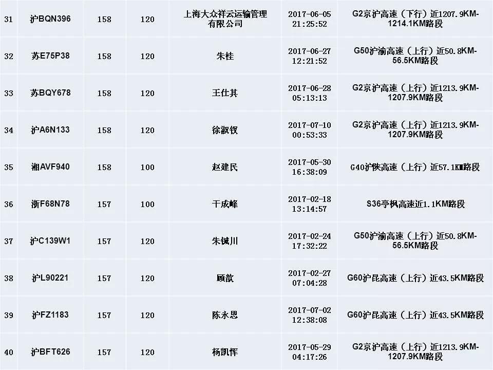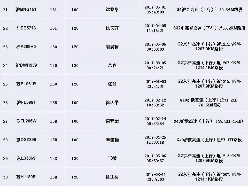 ????中青在線上海9月12日電(中國(guó)青年報(bào) 中青在線記者 王燁捷)上海交警今天公布今年以來“前五十”機(jī)動(dòng)車超速違法名單,最高時(shí)速竟達(dá)179km/h。