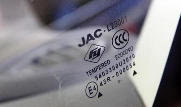 ????玻璃一般在側(cè)面玻璃和風(fēng)擋玻璃下沿會(huì)標(biāo)注生產(chǎn)日期,如圖中所示有這種數(shù)字加黑點(diǎn)的標(biāo)注,數(shù)字就是年份,黑點(diǎn)為月份。黑點(diǎn)如果在數(shù)字前面就7減去黑點(diǎn)數(shù)量;如果黑點(diǎn)在數(shù)字之后,就用13減去黑點(diǎn)個(gè)數(shù),得出的就是生產(chǎn)月份。