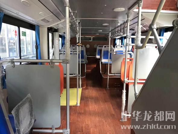 記者順著步梯來(lái)到第二層,視野頓時(shí)開(kāi)闊起來(lái)。原來(lái)該層頂部設(shè)計(jì)有6塊全景天窗,乘客坐在第二層不但不會(huì)有壓抑的感覺(jué),反而會(huì)視野開(kāi)闊,便于游覽周口街景。記者注意到,在全景天窗下面有遮陽(yáng)板,乘客可以用來(lái)遮擋陽(yáng)光。