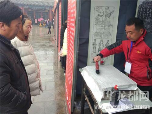 中華龍都網(wǎng)訊(周口報業(yè)全媒體記者 徐啟峰)3月25日,淮陽廟會開展一周有余,與廟會同步進行的非物質(zhì)文化遺產(chǎn)展每天都吸引數(shù)萬游人駐足觀看,其中由周口華威民俗文化博物苑提供的傳統(tǒng)農(nóng)耕文化展、傳統(tǒng)拓片制作技藝更是勾起許多游人的興趣。