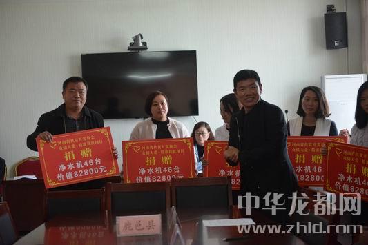 中華龍都網(wǎng)訊(周口報(bào)業(yè)全媒體記者 李瑞才 文/圖)4月26日上午,2018年“眾情大愛、精準(zhǔn)扶貧”捐贈(zèng)儀式在鹿邑縣掀開大幕。河南省扶貧開發(fā)協(xié)會、河南省“眾情大愛、精準(zhǔn)扶貧”項(xiàng)目組委會主任衛(wèi)建亞出席儀式并現(xiàn)場向鹿邑縣捐贈(zèng)1000臺價(jià)值180萬元的凈水設(shè)備。來自全縣24個(gè)鄉(xiāng)鎮(zhèn)(辦事處)的1000名貧困戶家庭很快就可以飲用到放心安全的“扶貧水”了。