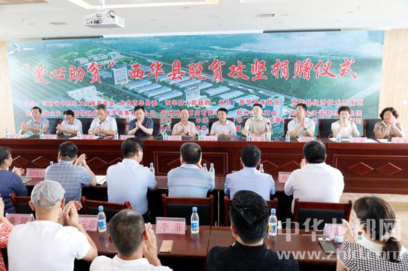 中華龍都網(wǎng)訊(周口報(bào)業(yè)全媒體記者 張猛 通訊員 常軍偉)7月14日上午,西華縣“愛(ài)心助貧”脫貧攻堅(jiān)捐贈(zèng)儀式在經(jīng)開(kāi)區(qū)9樓會(huì)議室舉行??h委書(shū)記林鴻嘉,縣委副書(shū)記、政法委書(shū)記程維崢,縣政協(xié)主席郭峰,縣委常委、宣傳部長(zhǎng)楊鳳臣,副縣長(zhǎng)毛茹,經(jīng)開(kāi)區(qū)主任宋廣良以及省委宣傳部原副部長(zhǎng)王嶺群,省政協(xié)辦公廳原巡視員王漢英等出席捐贈(zèng)儀式。