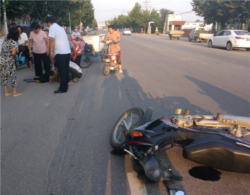 當(dāng)日6時(shí)許,趙紅建在寧平鎮(zhèn)扶貧返回縣城行駛至金丹大道工業(yè)區(qū)段時(shí),發(fā)現(xiàn)一輛摩托車倒在馬路中間,一位老人躺臥車邊,目測(cè)老人胳膊、腿部傷情較重。