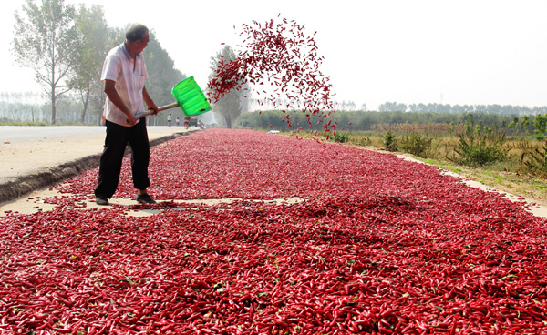 近年來(lái),商水縣郝崗鎮(zhèn)大力實(shí)施辣椒產(chǎn)業(yè)扶貧,通過(guò)黨員干部帶動(dòng)、結(jié)對(duì)貧困戶(hù)扶持發(fā)展,種植萬(wàn)畝以上小辣椒,實(shí)現(xiàn)畝效益3000元以上,促進(jìn)了群眾增收致富。圖為昨日上午,該鎮(zhèn)西洄行政村農(nóng)民正在晾曬小辣椒。