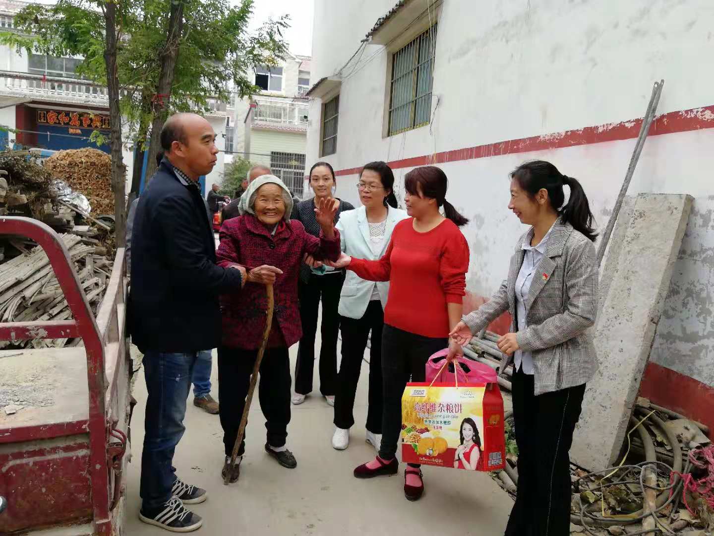 縣婦聯(lián)駐村工作隊(duì)首先召開黨員代表會(huì),要求黨員在扶貧網(wǎng)格化管理、秸稈禁燒、抗旱種麥、路肩培護(hù)、基礎(chǔ)設(shè)施建設(shè)、老人合吃合戶、五保老人集中供養(yǎng)、兩篩等各項(xiàng)工作中起到示范帶頭作用,要求大家以身作則,積極向群眾宣傳黨的扶貧政策;其次,在組織該村黨員完成上微黨課、升國(guó)旗、唱國(guó)歌、重溫入黨誓詞,交納10月份黨費(fèi)等主題黨日活動(dòng)規(guī)定動(dòng)作后,與部分黨員、全體村干部一起分別對(duì)代廟、查樓、張石橋、丁樓四個(gè)自然村的43戶85歲以上高齡老人進(jìn)行了看望慰問,每到一戶,工作隊(duì)都親切詢問老人的生活情況、身體狀況,是否存在困難,有什么需要幫助的沒有。
