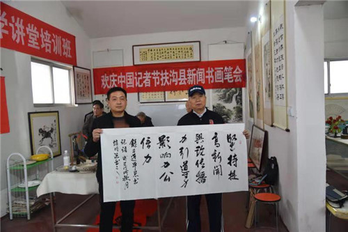 筆墨寫(xiě)春秋,重彩頌佳節(jié)。為慶祝第19個(gè)中國(guó)記者節(jié),在扶溝縣的張坡詩(shī)詞名人書(shū)畫(huà)館,來(lái)自省書(shū)法家協(xié)會(huì)的書(shū)法家與當(dāng)?shù)匦侣勑麄鞑块T(mén)的書(shū)畫(huà)愛(ài)好者們齊聚一堂,以舉行書(shū)畫(huà)筆會(huì)的形式向新聞媒體人慶賀節(jié)日。