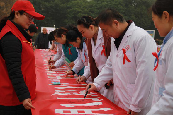 11月30日上午,由項城市衛(wèi)生計生委組織,來自項城市疾控中心、市第一人民醫(yī)院、市中醫(yī)院、市婦幼保健院及市內(nèi)的其它十余家醫(yī)療機構(gòu),共同在該市人民公園舉行第31個“主動檢測,知艾防艾,共享健康”的“世界艾滋病日”主題宣傳活動?;顒蝇F(xiàn)場,醫(yī)護人員共向群眾發(fā)放宣傳資料1800余冊(種),接受230多人次的咨詢服務(wù),大力宣傳倡導(dǎo)建立文明健康的生活方式,并希望大家都能正視艾滋、關(guān)注艾滋、預(yù)防艾滋。