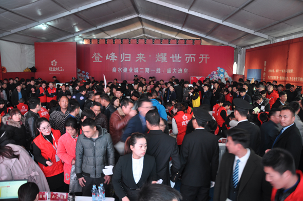 12月2日上午,秋雨綿綿,霧霾沉沉,但商水建業(yè)城二期開盤引發(fā)全城瘋狂搶房熱潮,逾千客戶在臨時搭建的開盤大廳內(nèi)上演搶房大戰(zhàn),2小時勁銷270套,盡顯樓市王者風(fēng)范,為陰冷的初冬和周口樓市送來了春意。