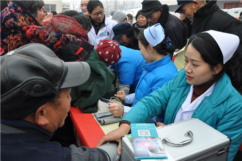 正在排隊(duì)量血壓的馬河村村民馬長(zhǎng)運(yùn)說:“我今年70多歲,血壓有點(diǎn)高,聽說這 里有義診活動(dòng),一大早便來這里等待了?!?/p>