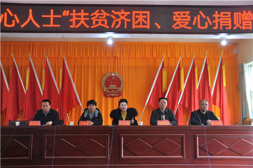 “四千歲你莫要羞愧難當(dāng),聽(tīng)山人把情由細(xì)說(shuō)端詳……”1月26日,在商水縣魏集鎮(zhèn)文化會(huì)堂舉行的“扶貧濟(jì)困 愛(ài)心捐贈(zèng)”儀式上,百余名群眾禁不住把熱烈的掌聲送給國(guó)家一級(jí)演員、享受?chē)?guó)務(wù)院特殊津貼的河南省越調(diào)劇團(tuán)團(tuán)長(zhǎng)申小梅女士。當(dāng)日,商水縣委常委、常務(wù)副縣長(zhǎng)胡國(guó)勝,魏集鎮(zhèn)黨委書(shū)記衛(wèi)春芒,商水建業(yè)董事長(zhǎng)朱占偉等把價(jià)值8萬(wàn)多元米面油等物品發(fā)入的群眾手中。