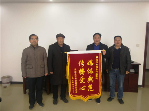 “傳播愛心,媒體典范”“為民解憂愁,心系千萬家”。1月25日上午,淮陽縣劉振屯鄉(xiāng)張老家行政村村支書張紀(jì)全專程趕到周口,給周口報(bào)業(yè)傳媒集團(tuán)、周口市啄木鳥志愿者服務(wù)工作委員會送來兩面錦旗,表達(dá)他們的感激之情(如圖)。