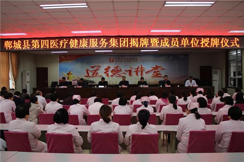 楊軍宣讀了《鄲城縣第四醫(yī)療健康服務(wù)集團(tuán)關(guān)于成立全面推進(jìn)醫(yī)療健康服務(wù)共同體建設(shè)領(lǐng)導(dǎo)小組的通知》,王斌宣讀了《鄲城縣第四醫(yī)療健康服務(wù)集團(tuán)關(guān)于成立醫(yī)療健康服務(wù)共同體醫(yī)院的通知》。第四醫(yī)療健康服務(wù)集團(tuán)成員單位寧平鎮(zhèn)衛(wèi)生院院長(zhǎng)許向東作代表發(fā)言。