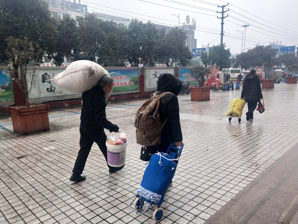 1月30日,農(nóng)歷臘月二十五,上午下起了大雨,在周口汽車客運(yùn)總站,一些從外地返鄉(xiāng)的乘客加快了回家過(guò)年的步伐。