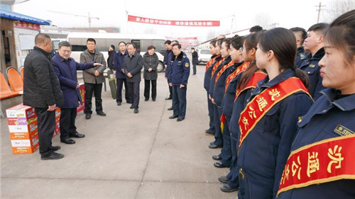 在縣公交公司,皇甫立新首先向全體干部職工致以節(jié)日的問候,對他們一年來為全縣人民安全順利出行做出的貢獻(xiàn)表示感謝。在認(rèn)真聽取有關(guān)負(fù)責(zé)人關(guān)于節(jié)日期間增開班車和車次的匯報后,皇甫立新說,公交車作為公共交通運輸體系中的重要組成部分,不僅在完善城市交通運輸格局、方便市民出行方面發(fā)揮著重要作用,同時也是城市形象的象征。希望堅守崗位的公交職工要繼續(xù)提供優(yōu)質(zhì)服務(wù),文明安全駕駛,為居民在春節(jié)期間走親訪友和安全出行提供方便、搞好服務(wù),展示出沈丘公交公司員工的良好素質(zhì)和良好形象。并叮囑公交公司負(fù)責(zé)人要合理安排好職工的工作和生活,為廣大一線工作人員安心工作提供堅實的后勤保障,讓他們更加舒心愉快地服務(wù)廣大群眾。