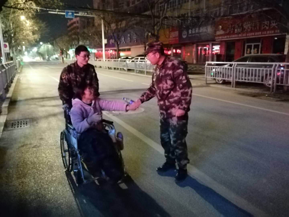 人民軍隊(duì)愛(ài)人民,無(wú)論山高水遠(yuǎn),歲暮天寒。2月18日凌晨1時(shí)許,武警周口支隊(duì)政委韓偉鋒查勤歸來(lái),在支隊(duì)大門(mén)口恰巧遇到一位大姐獨(dú)自一人搖著輪椅艱難前行。當(dāng)晚氣象局預(yù)報(bào)有降雪,實(shí)時(shí)氣溫也只有-4℃。夜深人靜,天凝地閉,韓政委有些擔(dān)憂這位大姐的安全,連忙上前詢問(wèn)情況,并步行推著輪椅將大姐送至目的地。其實(shí),這件事只是武警周口支隊(duì)愛(ài)民助民工作的一個(gè)縮影。