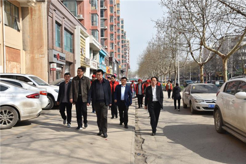 3月26日上午,川匯區(qū)政協(xié)主席張劍鋒,黨組副書記、副主席梁顯棟,副主席王建國、馬淮海到建安路檢查督導(dǎo)“市容工作日”活動開展情況。七一路辦事處主任王峰陪同檢查。