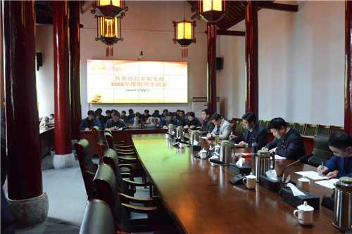 3月29日下午,鹿邑縣委辦公室黨支部召開(kāi)2018年度組織生活會(huì)并開(kāi)展民主評(píng)議黨員活動(dòng)??h委書記梁建松,縣委常委、辦公室主任宋濤以一名普通黨員身份參加會(huì)議??h委辦公室機(jī)關(guān)全體同志參加會(huì)議。
