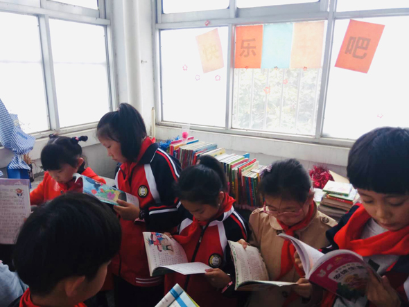 為迎接世界讀書日的到來,引導(dǎo)學(xué)生“在閱讀中成長,在成長中閱讀”,養(yǎng)成終身閱讀的好習(xí)慣,周口六一路小學(xué)在全校范圍內(nèi)創(chuàng)建班級圖書角,每個班級圖書角的藏書超過百冊。圖為孩子們在圖書角認(rèn)真閱讀。