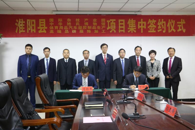 本次會(huì)議共簽約四個(gè)項(xiàng)目,總投資約17.5億元。分別是:河南龍都文化娛樂(lè)有限公司投資5.1億元的國(guó)際產(chǎn)業(yè)園項(xiàng)目。翰高兄弟(北京)投資集團(tuán)投資10億元的中華姓氏博物館項(xiàng)目。東莞啟昊服飾有限公司投資1.2億元的高檔服飾加工項(xiàng)目;溫州奕銘新材料股份有限公司投資1.2億元的體育及汽車(chē)用品項(xiàng)目。