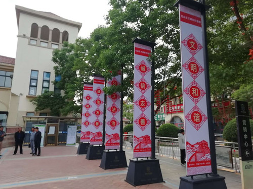 記者了解到,該社區(qū)圍繞自身特點,結(jié)合社會熱點,以社會主義核心價值觀為載體,貫徹落實“以文化城”的城市發(fā)展理念,以“愛在鄰里”為主題,結(jié)合中華民族優(yōu)秀傳統(tǒng)文化,涵蓋紅色黨建、文明禮儀、家風(fēng)家訓(xùn)、衛(wèi)生健康教育、環(huán)保知識、安全生產(chǎn)、社區(qū)工作等方面知識內(nèi)容,大力宣傳“家和、鄰睦、綠色、共建、共治、共享”的社區(qū)發(fā)展理念和“健康、衛(wèi)生、文明”的生活理念。一幅幅圖文并茂的宣傳板,一句句引人深思的文明標(biāo)語,都透露出濃濃的文化氣息。該活動既傳播了文明禮儀、傳統(tǒng)文化、科學(xué)常識、鄰里和諧、衛(wèi)生保健等方面知識,使居民在耳濡目染中受到教育,又傳達(dá)了社區(qū)支部、居委會的職能和相關(guān)業(yè)務(wù),讓居民們更加了解社區(qū)工作內(nèi)容,為建設(shè)和諧文明社區(qū)增添了一個嶄新的交流窗口。