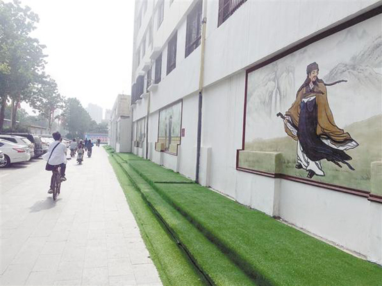 記者通過(guò)走訪發(fā)現(xiàn),與周口六一路小學(xué)門前的育新路一樣,我市不少小街道兩側(cè)有了文化墻。這些文化墻內(nèi)容新穎,表現(xiàn)形式多樣,美感十足。