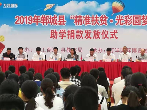 本次“精準(zhǔn)扶貧·光彩圓夢(mèng)”由縣萬(wàn)洋集團(tuán)慷慨解囊、傾情相助,共捐資20萬(wàn)元,對(duì)100名品學(xué)兼優(yōu)的貧困學(xué)子給予資助,為鄲城的教育事業(yè)增光添彩。
