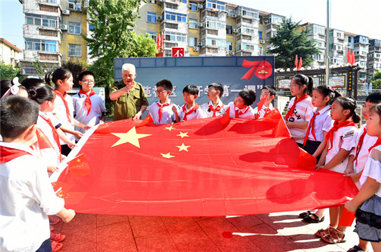 滿頭白發(fā)、一身黃軍裝的抗美援朝老戰(zhàn)士王文華,站在國旗臺下,整理旗繩,引人注目。他今年85歲,是此次升旗儀式的升旗手。10年前,王文華在文苑社區(qū)捐建市區(qū)首座居民小區(qū)國旗臺。在本報倡導之下,全城掀起“紅色旋風”,相繼建立20多座小區(qū)國旗臺。10年來,王文華心中始終澎湃著愛國情懷,每到國慶節(jié)等重大節(jié)日,都會帶領社區(qū)部分居民一同升國旗,使國旗臺成為了社區(qū)的愛國主義教育基地,他還因此上了央視《新聞聯(lián)播》。