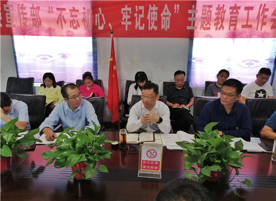 9月18日下午,縣委宣傳部召開(kāi)“不忘初心、牢記使命”主題教育工作會(huì)議,學(xué)習(xí)習(xí)近平總書(shū)記在“不忘初心、牢記使命”主題教育會(huì)議上的講話,深入貫徹落實(shí)中央、省委、市委和縣委“不忘初心、牢記使命”主題教育工作會(huì)議精神,安排部署部機(jī)關(guān)“不忘初心、牢記使命”主題教育工作。