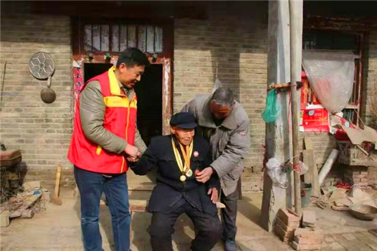 趙隆成是衡霞光走訪的第一名老兵。老人1925年出生,高賢鄉(xiāng)聚臺崗行政村人,16歲加入中國共產(chǎn)黨,1943年開封戰(zhàn)役中腳跟受傷,行動不便。“共產(chǎn)黨好,共產(chǎn)黨的干部們好啊?!?得知來訪, 老人拉住衡霞光的手激動地說。