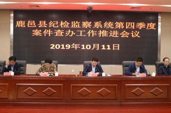 10月11日,鹿邑縣紀(jì)檢監(jiān)察系統(tǒng)第四季度案件查辦工作推進(jìn)會(huì)議召開(kāi)。全面總結(jié)了全縣1至9月查辦案件情況,客觀分析了當(dāng)前形勢(shì)和存在問(wèn)題,對(duì)做好下一階段案件查辦工作任務(wù)進(jìn)行了安排部署。