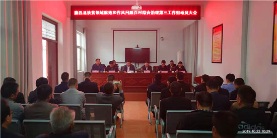 10月22日上午,鹿邑縣扶貧領(lǐng)域腐敗和作風(fēng)問題百村集中治理第三工作組動員大會在王皮溜鎮(zhèn)會議室召開??h委常委、紀(jì)委書記、監(jiān)委主任韓林出席會議并講話。相關(guān)單位負(fù)責(zé)人、駐村工作組人員、王皮溜鎮(zhèn)黨員干部參加會議。