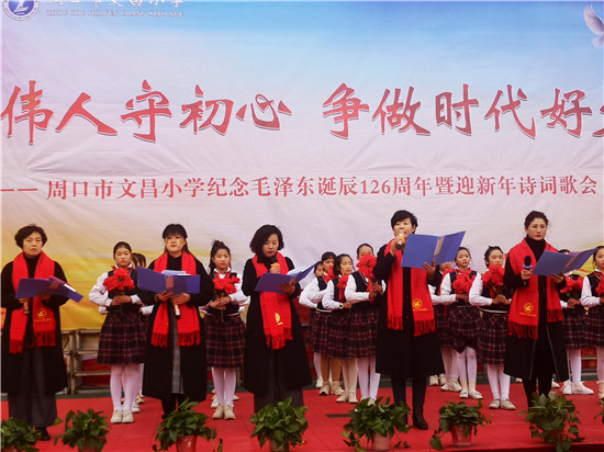 12月26日,是毛澤東誕辰126周年紀(jì)念日。為深切緬懷偉大領(lǐng)袖毛澤東,弘揚(yáng)革命精神、民族精神和愛(ài)國(guó)主義精神,文昌小學(xué)舉行了紀(jì)念毛澤東誕辰126周年暨迎新年詩(shī)詞歌會(huì)。