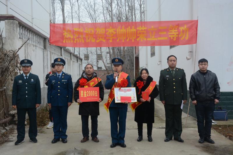 一人參軍,全家光榮;一人立功,全家榮耀。2020年1月2日,沈丘縣洪山鎮(zhèn)廟山李村聽說黃繼光生前部隊(duì)要來送喜報(bào),榮立三等功的李帥帥一家特地選擇在村口迎接這份榮譽(yù)。接過大紅喜報(bào),李帥帥的母親喜極而泣:活了幾十年了,送兒子當(dāng)兵也有12余年,今天是我對“軍屬光榮”四個(gè)字感觸最深的一次,也是最光榮的一天,沾了兒子的光了……