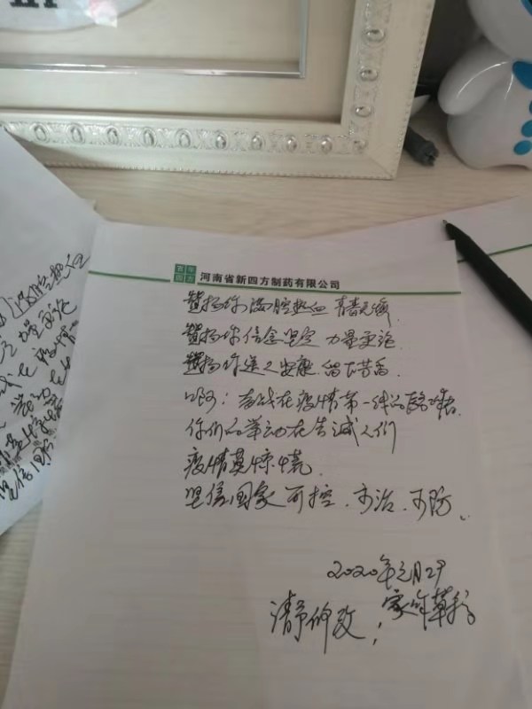 “阻擊疫情的陣容里你默默奉獻(xiàn)著熱和光你舍棄小家 顧著大家 心似蓮花 情滿海洋”1月30日,50多歲愛好寫詩的周口市民王化民致電記者,為了表達(dá)對(duì)奮戰(zhàn)在疫情一線白衣天使的崇敬,他特意寫了一首詩歌來禮贊。