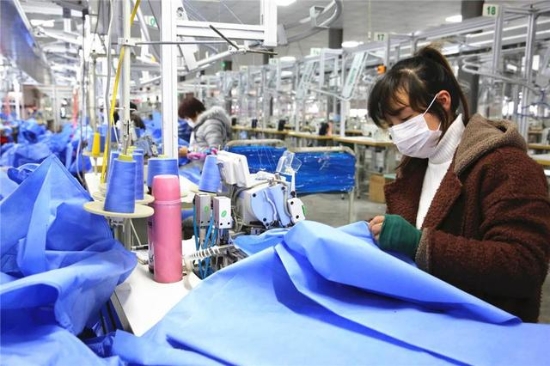 “進廠員工每天都要佩戴口罩,車間里一天三次消毒,身體不適要及時向村委會匯報……”2月22日,安靜了多日的項城市三店鎮(zhèn)黃莊行政村“扶貧車間”里又熱鬧了起來,30多名附近村的村民熟練地操作著縫紉機,隨著清脆的機杼聲,一捆捆丙綸布匹滑下生產線。